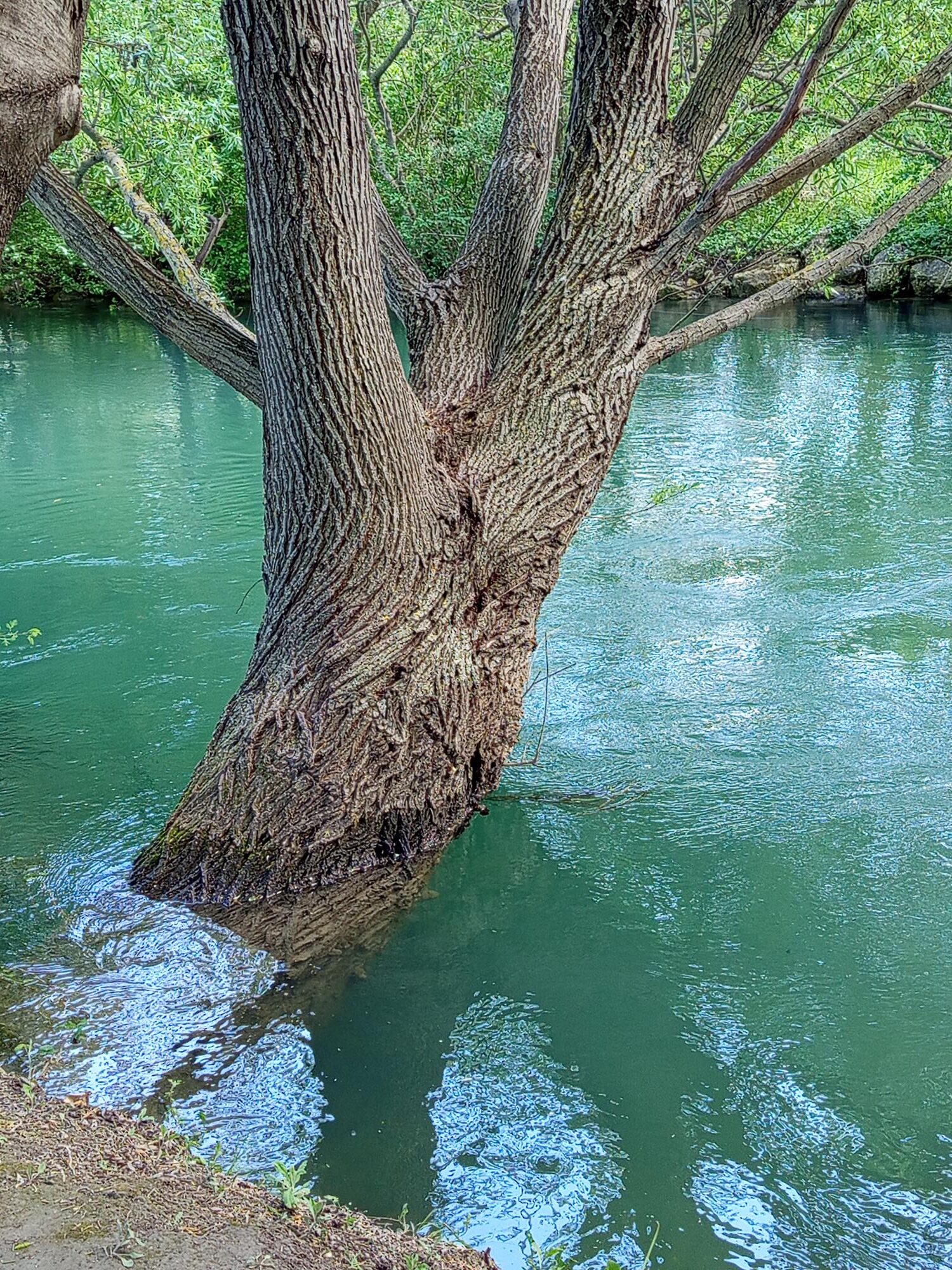à travers la terre.